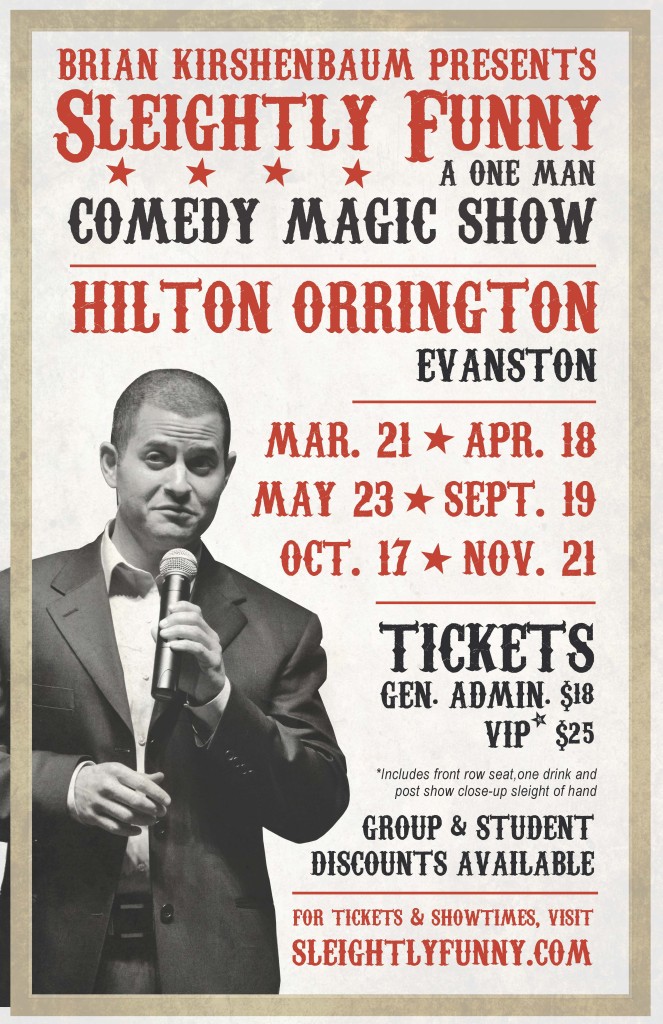 Developed poster concepts around an old vaudeville theme for a comedy magic show series in Evanston. Used as a promotional poster in the print and digital space.