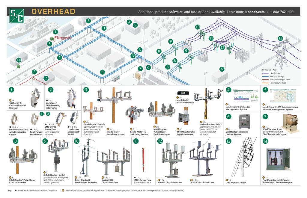 S&C sales wanted a simple visual to represent how where products appear on the grid to educate customers. Led this project with the creative skills of a senior designer and illustrator to process technical electrical details into an easy-to-digest piece. This piece was designed as a fold-out, printed piece a salesperson would leave with a customer. The piece was redesigned to be a digital form of content at an 17″ x 11″ size so it could be printed locally and distributed digitally.